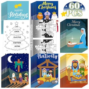 - Livro de atividades de Natal a granel: há 60 peças de livros de atividades de presépio de Natal para crianças no pacote, vem em 6 estilos, 10 peças para cada estilo, que são suficientes para você distribuir para seus filhos ou pequenos convidados na festa de Natal