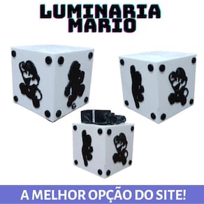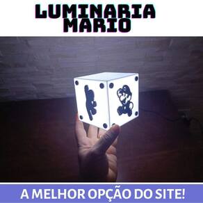 Luminaria abajur cubo bloco super mario bross Luminaria abajur cubo bloco super mario bross -características: Cor branco e preto Feita em acrílico de 2mm com película protetora. Já vai com a fonte de alimentação Pezinhos borracha antederrapantes. Otimo para usar como abaju nao vai bateria- dimensões: Altura 11cmLargura 10 cmComprimento 10cmEssa nossa não acaba bateria Ja vai a fonte de alimentaçao Marca: Viza 3D Games