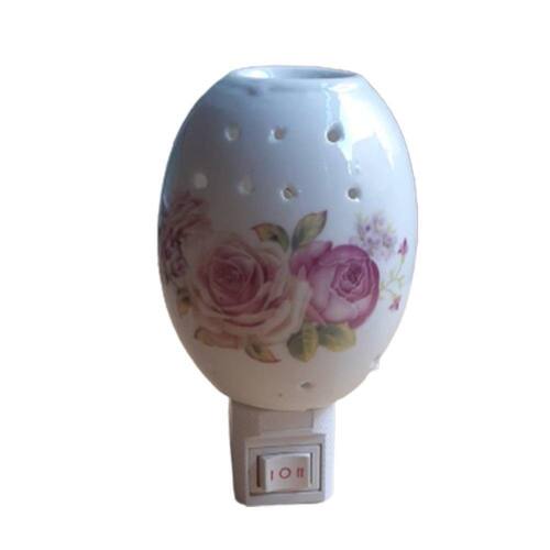 Mini Luminária Abajur com Difusor Bivolt De Tomada 2 Estágios Cor: Oval com Flores Mini Abajur de tomada em cerâmica com 2 estágios de luz, bivolt e difusor de aromas. Temos diversos tipos de Abajur disponíveis e basta selecionar o modelo de sua preferência antes da finalização do seu pedido. Ficha Técnica - 2 Estágios de iluminação mais claro deixando o botão liga/desliga para o lado direito e mais escuro deixando o botão para o lado esquerdo - Tamanho do Abajur: De 7 a 8 cm dependendo do modelo - Tamanho total do Mini Abajur com a tomada: De 10 a 11 cm dependendo do modelo - Material do Abajur: Cerâmica- Voltagem: Bivolt- Potência: 7W- Modelo da lâmpada do Abajur: 12E Modo de Uso Ao plugar o aparelho na tomada, deve-se adicionar umas 20 gotas de essência aromática ou óleo essencial na parte superior do Abajur para que o ambiente médio de 30m mantenha-se aromatizado por até 4 horas. Limpeza Para realizar a higienização é simples: após cada uso, retire o aparelho da tomada e utilize papel toalha ou pano úmido para limpar o excesso. Feito isso, o Abajur estará pronto para o uso de uma nova essência.