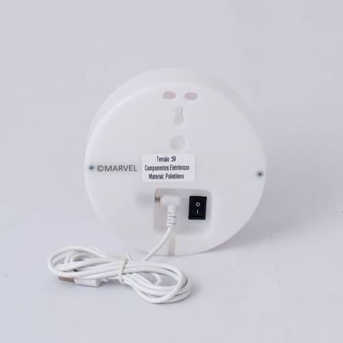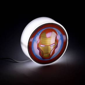 A Mini Luminária LED Redonda Homem de Ferro USB Marvel vai alegrar e divertir qualquer lugar que ela estiver, com um toque de heroísmo e muita personalidade ela é um intem incrível para fãs de super-heroís! Perfeita para sua decoração, a Mini Luminária LED Redonda Homem Aranha USB Marvel, vai encantar seu quarto, aquele seu cantinho especial ou o seu escritório. Essa luminária vai agregar no seu espaço de leitura por ser uma luz difusa, o que não agride a visão, além de deixar o local com uma iluminação mais baixa.Material: Polietileno e componentes eletrônicos Dimensões: 11 x 11 x 4 cm Tensão: 110V/220V Alimentação: Com interruptor no produto e cabo USB medindo 1,2m de comprimento Cuidados: Limpar com pano úmido e macio Informações adicionais: Utiliza fita de led 5w (inclusa no produto) Perguntas frequentes A luminária pode ser pendurada na parede ? Sim ela pode ser pendurada na parede, já consta com furos para ser instalada (parafusos não inclusos).