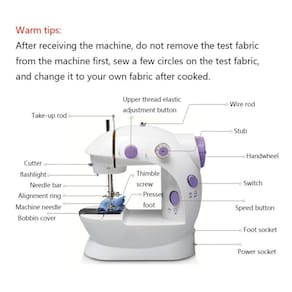 Sobre o Produto: 2 linhas de design: design de costura, tem linha de fundo e linha de superfície. Proporciona uma costura estável e de alta qualidade para todos os seus projetos, pode costurar em qualquer tecido. Velocidade Dupla: Baixa ou alta velocidade, a velocidade pode ser ajustada para que novatos, crianças ou um mestre possam operá-la facilmente. Interruptor duplo: Pode escolher o interruptor de mão ou pedal. Por favor, certifique-se de ler as instruções antes de usar a máquina de costura, a operação errada fará com que o fio fique preso, com que a agulha quebre ou até mesmo fazer com que o produto não funcione.