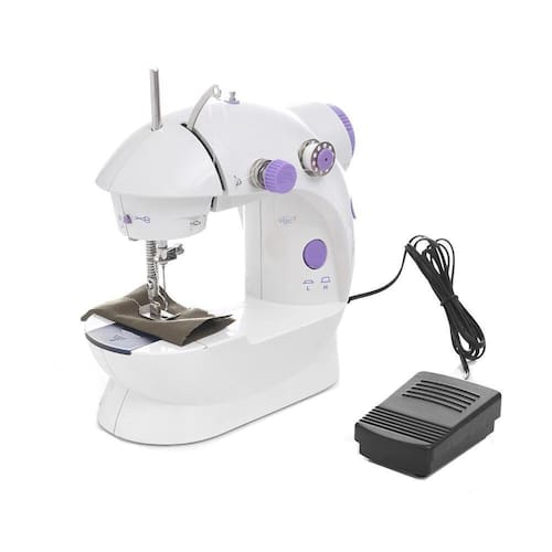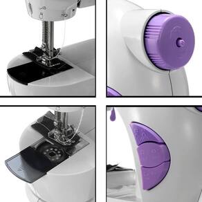 Mini máquina de costura portátil Modelo: 202Marca: lanmaxBivoltIdeal para uso doméstico.Compacta, surpreendente e cabe em qualquer lugar. Trabalha com ponto reto e com duas velocidades de avanço.Funcionamento manual através do pedal já incluso.É perfeita para realizar consertos e pequenos trabalhos.Funciona com uso de quatro pilhas aa não inclusas ou com energia elétrica (acompanha fonte).Trabalha com sistema de carretilhas como as máquinas grandes.É leve e compacta, reúne todos os recursos de uma máquina profissional, mas com uma exclusiva vantagem: é a única que você guarda em qualquer lugar e leva para onde quiser.Compacta no tamanho e gigante no desempenho. Conserta e costura desde peças de tecidos delicados, como algodão ou cetim.