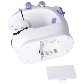 Funcionamento: A Mini Máquina de Costura Reta pode ser utlilizada através de alimentação eletrica ou pilhas.