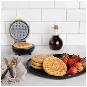Mini máquina de waffle temática Shrek com revestimento antiaderente, compacta e fácil de usar. Ideal para fãs do Shrek e da cultura pop.