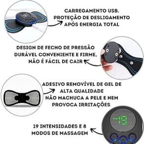 O massageador elétrico portátil utiliza a tecnologia ems eletroestimulação muscular e é a solução perfeita para quem busca conforto e alívio de dores musculares no final do dia. Com sua tecnologia de estimulação elétrica, ele atua na musculatura, promovendo uma sensação de relaxamento e bem-estar. Além disso, ele ainda estimula a circulação e combate dores musculares, oferecendo 8 modalidades de estimulação e 19 intensidades diferentes para atender às suas necessidades.