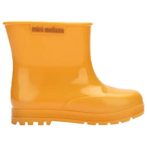 Mini Melissa Welly Baby 33869 com cano de 12 cm e circunferência de 28 cm. Acabamento vulcanizado, palmilha em EVA e sola em PVC. Tecnologia Melflex oferece flexibilidade, resistência e conforto, sendo 100% reciclável. Ideal para um ajuste confortável e moderno.