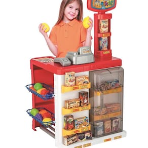 As crianças irão adorar este produto! Possui Leitor de código de barras com bip e luz; Cestinhas com muitas frutinhas e legumes; Caixa registradora e dinheirinho; Geladeira com porta abre e fecha. Brinquedo Educativo e que irá despertar a criatividade da criança!