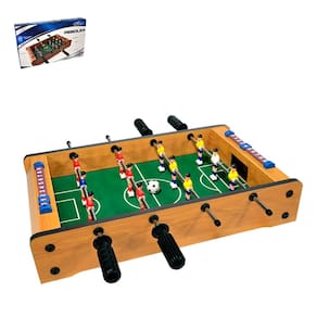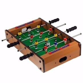Mini Mesa de Pebolim Jogo Futebol 50x31x10 Completo Em um modelo compacto, a Mini Mesa de Pebolim pesa pouco mais de 2 quilos, o que permite que ela seja transportada para qualquer lugar sem sacrifício. garanta a diversão da família onde quer que você esteja com este incrível produto. Categoria: Amador Composição/Material : Jogo em madeira, haste de jogadores em ferro com pontas emborrachadas em plástico injetado. Conteúdo do Jogo 01 Mini mesa, - 02 Bolas, - 01 Caixa com 12 jogadores, - 01 Manual de instrução Cor Madeira e verde Dimensões aproximadas do produto cm - CxLxA 50 X 31,5 X 10 cm Peso líq. aproximado do produto kg 2,1 kg Ean: 7899658319366