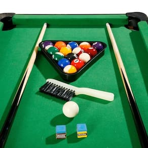 Mini mesa de bilhar sinuca Em tamanho mais compacto e reduzido, porém com a mesma funcionalidade, a Mini Mesa de Sinuca é ideal para quem quer se divertir em qualquer lugar. Ótima para levar para a praia e para viagens de descanso, ou ainda para presentear. Divirta-se com esta maravilha Chame os amigos e comece a brincadeira. O jogo de sinuca é super divertido e você pode jogar com toda a turma. Possui tacos com pontas emborrachadas. Uma brincadeira divertida que vai entreter, divertir e animar adultos e crianças. Entre nessa disputa e mostre quem é o grande vencedor de Sinuca. Desenvolvido com matéria resistente, a mesa possui estrutura em MDF, tecido veludo, tacos em madeira e acabamentos em borracha. As bolas são de resina e triângulo em polipropileno. Com a mesa esta Mini Mesa de Sinuca a diversão está garantida, convide os amigos e divirta-se durante seus momentos de lazer. Características - Mini Mesa de Sinuca - Tamanho reduzido, ideal para você jogar uma partida em qualquer lugar - Muito divertido para crianças e adultos - Tacos com pontas emborrachadas - Leve para qualquer lugar, basta colocar sobre uma superfície plana e aproveitar o jogo Acompanha 01 Escova para limpeza 15 Bolas Coloridas 01 Bola Branca 02 Tacos 01 Mesa de Sinuca 01 Triângulo 01 Giz Dimensões: Tamanho da Mesa Cx Ax L 51 cm x 9 cm x 31 cm Tamanho do Taco : 48 cm Imagem meramente ilustrativa produto é isento do registro do INMETRO 3 meses de contra defeito de fabricação.