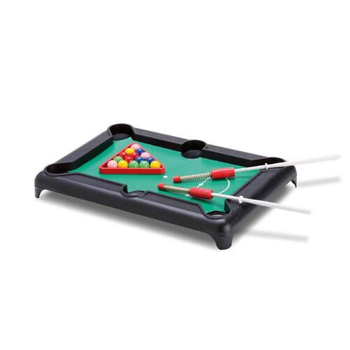 Mini mesa de Snooker Samba Toys A Mini Mesa de Bilhar da Samba Toys garante toda a diversao do bilhar em uma versao compacta para os pequenos levarem para onde quiser Basta colocar em uma superficie plana e se divertir Seu tamanho compacto facilita seu armazenamento, acompanha tudo que e necessario para uma partida divertida Diversão Garantida entre a criançada, estimula o racíocinio e a coordenação motora. ESPECIFICACOES: - Recomendado a partir de 4 anos - Dimensoes do Produto (CLA): 19 x 13 x 3 cm - 01 Mini mesa de Bilhar - 02 Tacos - 16 Bolas - 01 Triangulo - Material: Plastico - Marca: Samba Toys