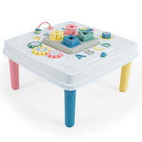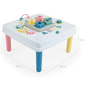 Contém: 4 pés bastão de encaixe, 1 kit didático removível central e 1 base mesa de atividades psicomotoras