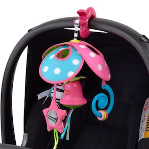 Móbile dobrável com som de sinos de vento, chocalho e espelho. Perfeito para prender no carrinho ou moisés durante os passeios. Fácil de dobrar para levar aonde quiser. O Mini Móbile Pack & Go Tiny Princess Tales é perfeito para ser instalado na capota do carrinho, ficando no campo de visão do bebê. Ele estimula a cognição e os sentidos, em exclusivo design preto e branco. Possui 4 divertidas atividades: espelho, chocalho, sino dos ventos e asas que dobram. Prático, pode ser dobrado e levado facilmente para onde quiser. Clipe universal, asas dobráveis para levar aonde quiser, espelho, 2 chocalhos e sino de vento.