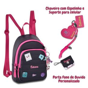 Kit Mini Mochila + Porta Fone + Chaveiro com Espelhinho e Porta Celular - Coleção Luluca Um conjunto exclusivo que une estilo, praticidade e muita fofura, embalado em uma linda caixa personalizada e reutilizável, perfeita para presentear ou guardar seus itens preferidos. O kit inclui: Mini Mochila Luluca: Dimensões aproximadas: 24x16x8 cm. Confeccionada em material premium com acabamento impecável. Dois compartimentos com fechamento por zíper, ideais para organizar seus objetos. Alças de costas ajustáveis e alça de mão superior, garantindo versatilidade no uso. Estilizada com vários patches metálicos decorativos, que trazem um charme especial. Chaveiro exclusivo, adicionando um toque moderno e divertido. Porta Fone de Ouvido Luluca: Compacto e estiloso, perfeito para manter seus fones organizados e protegidos. Chaveiro com Espelhinho e Porta Celular: Um acessório multifuncional e super tendência, ideal para quem valoriza praticidade e estilo. Destaque especial para a caixa personalizada, um verdadeiro mimo que pode ser no dia a dia como organizador ou peça decorativa. Não perca a chance de garantir esse kit exclusivo e encantador Marca: Não Informado