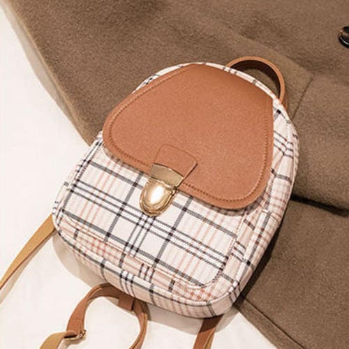 Mini Bolsa Mochila Urbana Casual Xadrez com saída para Fones de Ouvido