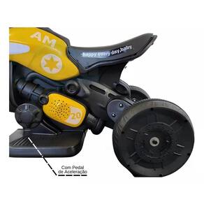 Conteúdo da Embalagem: - Inclui 1 Mini Moto Elétrica Amarela 6V com LED e Marcha Ré. - Produto pré-montado com manual de instruções.