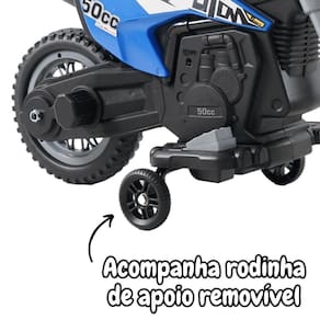 Com a Mini Moto Cross Elétrica Infantil 6v Passeio Importway a diversão está garantida, ela possui 2 rodas e 2 rodinhas de apoio que geram maior estabilidade, trazendo mais segurança para a criança.