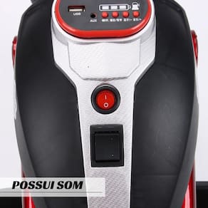 Além de transmitir toda a sensação de um verdadeiro motoqueiro ou motoqueira, a mini moto possui sistema com som e luz.