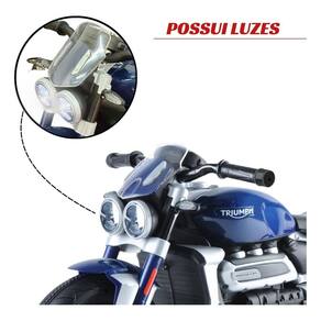 Mini moto eletrica infantil 6v triumph rocket custom classic bw382 Cor: azul Mini motinha elétrica infantil importway triumph rocket 3gt Com a mini moto elétrica triumph rocket 3gt a diversão está garantida, por ser um produto licenciado possui detalhes realistas que fazem a criança se sentir dirigindo uma moto de verdade. Possui duas rodas e um par de rodas de apoio que geram maior estabilidade, trazendo mais segurança para a criança. Para melhorar ele é motorizado com bateria 6v recarregável. Chegando a uma velocidade de até 3,5 km/h, a emoção está garantida. Possui duas velocidades, além de farol e música. Especificações: Peso máximo recomendado kg : 30kg Velocidade máxima: 3,5km/h Cor: azul Bateria: 6v recarregável Funcionamento: acionamento via pedal Piso ideal: concreto, piso e asfalto Tempo de carregamento da bateria: 8 a 12 horas Tempo de funcionamento aproximado do produto: 1h30 Rodas: 02 rodas com banda de pvc e 2 rodinhas de apoio Sistema de direção: manual Certificado pelo inmetro Características: Luz de farol Comando para frente, direita e esquerda Bateria 6v Bateria recarregável Certificado pelo inmetro Você está adquirindo: 01 mini motinha elétrica infantil importway triumph rocket 3gt 01 carregador bivolt 110/220v 01 manual de montagem compra garantida - ao comprar conosco a sua compra é 100% garantida, o seu dinheiro está seguro até a entrega. 90 dias. Imagens meramente ilustrativas Importway importando soluções com qualidade, inovação e responsabilidade desde 2007. Homologação Inmetro: IP-BRI-0298/2022-77 Marca: Não Informado Ean: 7908449937396
