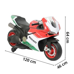 Com a mini moto elétrica Ducatti Panigale a diversão está garantida, por ser um produto licenciado possui detalhes realistas que fazem a criança se sentir dirigindo uma moto de verdade. Possui duas rodas e um par de rodas de apoio que geram maior estabilidade, trazendo mais segurança para a criança. Para melhorar ele é motorizado com bateria 12v recarregável. Possui três velocidades, além de farol e som.