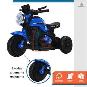 Especialmente projetado para o uso infantil com um visual e design moderno, conta com uma configuração esportiva que deixa os pequenos terem a sensação de pilotar uma moto de verdade.Com toda a segurança garantida é perfeito para passear em um parque, condomínio e na rua; podendo brincar tanto individualmente quanto com os amigos. A Mini moto elétrica é aprovada pelo INMETRO e foi especialmente projetada para o uso infantil com tamanho confortável e velocidades seguras para as crianças. Movida a bateria recarregável de 6V conta com 3 rodas gigantes que garante uma ótima estabilidade.CARACTERÍSTICAS TÉCNICAS:Medidas: 90cm x 50cm x 66cmIdade Recomendada: A partir de 3 anosPeso suportado: Até 25 kgBateria: 6V recarregávelTempo de carregamento: 8 a 12 horasVelocidade máxima: 3km/hPeso: 4,5 kgMarca: Baby StyleRef.: 998541ITENS INCLUSOS• 01 Triciclo Elétrico• 01 Carregador de Bateria - Bivolt (110V/220V)• 01 Manual de instruções