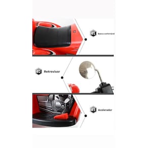 - **Segurança em Primeiro Lugar:** Equipada com pedal/acelerador e função reversa, permite controle total da moto com segurança. Rodinhas auxiliares garantem estabilidade durante o aprendizado.