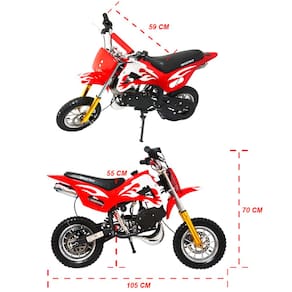 Com a Mini Moto Cross 49CC Dirt Bike a criançada vai se divertir como nunca! Com motor 2 Tempos de 49CC ela permite uma experiência única e verdadeira pra as crianças com velocidade máxima de 45 km/h. É recomendada para crianças a partir dos 4 anos e que pesem até 55 kg. Conta com freio a disco nas duas rodas, pneus para qualquer tipo de solo e tanque para até 1,5 litros de combustível. Apresenta design inovador e é uma verdadeira máquina para qualquer tipo de solo como asfalto ou terra e que torna a brincadeira cheia de aventura.