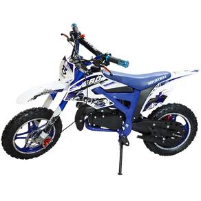 Com a Mini Moto Cross 49CC Dirt Bike a criançada vai se divertir como nunca! Com motor 2 Tempos de 49CC ela permite uma experiência única e verdadeira para as crianças com velocidade máxima de 24 km/h. É recomendada para crianças a partir dos 4 anos e que pesem até 55 kg. Conta com freio a disco nas duas rodas, pneus para qualquer tipo de solo e tanque para até 1,5 litros de combustível. Apresenta design inovador e é uma verdadeira máquina para qualquer tipo de solo como asfalto ou terra e que torna a brincadeira cheia de aventura.