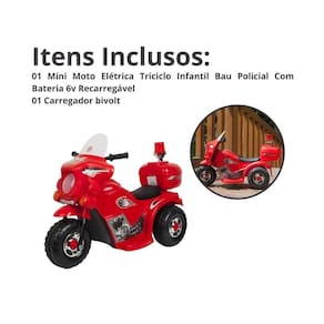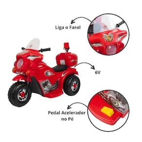 A Mini Moto foi feita especialmente para proporcionar mais diversão e ajudar no desenvolvimento pedagógico. Ela ajuda no desenvolvimento da capacidade motora das crianças e proporciona memoráveis momentos. Além de transmitir toda a sensação de um verdadeiro motoqueiro ou motoqueira. A mini moto possui sistema com som, luz de farol, sirene e um porta objetos Adequado para as crianças andarem em terreno plano.