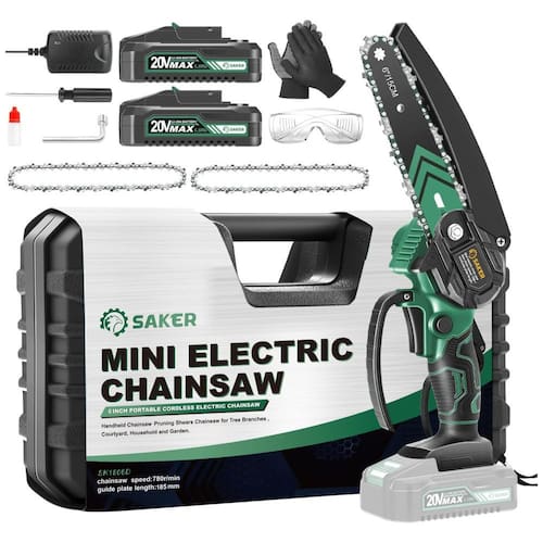 Esta mini motosserra sem fio de 6 polegadas é uma ferramenta perfeita para mães, amigas, faz tudo e mulheres que gostam de trabalhar com madeira ou de organizar o quintal. Com um comprimento de face cortável de 6 polegadas e um comprimento total de chapa de aço de 9 polegadas, você pode cortar árvores mais grossas para atender melhor às suas necessidades. A mini motosserra Saker adapta uma corrente guia de alta qualidade que passou por um processo de têmpera profunda para garantir um corte suave. Além disso, usa um motor de cobre puro, que é muito potente, tornando a eficiência de corte maior e mais rápida. A mini motosserra Saker é equipada com uma bateria de lítio recarregável de 20 V 1500 mAh, que pode ser usada por um longo tempo. A mini motosserra Saker de 6 polegadas sem fio com 2 baterias pode ser carregada a qualquer momento, tornando a conveniente e rápida. Embora a mala seja pequena, ela pode armazenar todos os acessórios perfeitamente. A mini motosserra Smart Saker é uma motosserra pequena, prática, rápida e fácil de montar, levando apenas 1 minuto para toda a instalação. A motosserra Saker de 6 polegadas tem uma superfície de corte mais longa, permitindo que você corte árvores um pouco mais grossas com menos esforço, proporcionando uma melhor experiência. Esta motosserra também tem um motor de alta eficiência com fio de cobre atualizado, oferecendo à sua ferramenta maior tempo de execução, mais torque e mais potência, o que leva a menos desgaste, estendendo a vida útil da motosserra portátil Smartsaker. Se você tiver alguma dúvida sobre as motosserras elétricas, a qualquer momento, estamos sempre disponíveis.