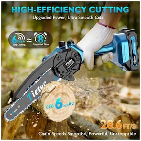 Esta mini motosserra portátil é perfeita para cortar galhos e toras de tamanho médio. É ideal para áreas apertadas onde uma motosserra maior não funcionaria. A motosserra é fácil de segurar e moldar, tornando o corte de madeira uma brisa. O lubrificador automático é uma mudança de jogo, pois a serra tem um reservatório para óleo de corrente, o que é ótimo para manter a corrente lubrificada. A serra é equipada com 2 baterias recarregáveis removíveis de 2000mAh, permitindo que você corte sem fio até mesmo no campo. A mini motosserra também vem com 5 projetos de segurança, incluindo uma trava de segurança, defletores de segurança, luvas anti corte, alça antiderrapante e óculos de proteção. Tudo isso é embalado cuidadosamente em uma caixa durável e portátil, ideal para atividades ao ar livre ou seu quintal. Esta mini motosserra é um ótimo presente de Natal para homens, mulheres, pais, amigos, DIYers, jardineiros e proprietários de casa.