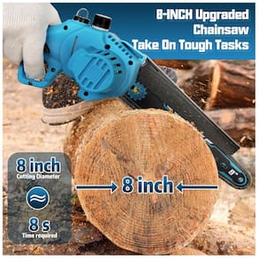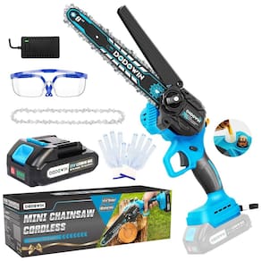 A mini motosserra sem fio DODOWIN de 20,3 cm (8 polegadas) é perfeita para tarefas de corte em quintais e fazendas. Possui sistema de lubrificação automática, trava de segurança e bateria de 21 V e 2000 mAh, garantindo operação segura e eficiente. Com motor potente de 775 W, corta toras e galhos de até 20 cm de diâmetro com facilidade.