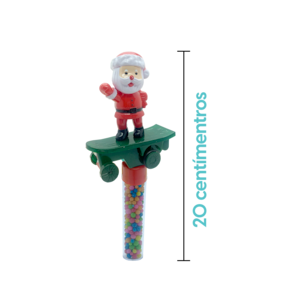 Preso à parte superior de um tubo recheado de balinhas sabor Tutti Frutti, o Mini Noel no Skate é uma combinação perfeita de diversão e guloseimas. Com 12 unidades por display, ele é ideal para presentear, distribuir em festas escolares ou como uma atração especial nos eventos de Natal.