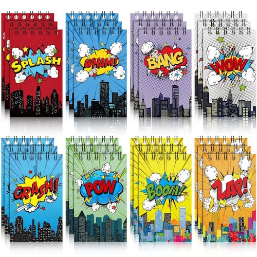 - Amplas aplicações: estes cadernos de bolso estão cheios de elementos coloridos de explosão de heróis, adequados para festas temáticas de aniversário de heróis, festas de carnaval, chá de bebê e atividades escolares e assim por diante; esses mini blocos de notas de heróis também são boas recompensas de atividades escolares, lembrancinhas de festa, enchimentos de meias de carnaval e muito mais, aproveite os blocos de notas de heróis para sua escrita divertida