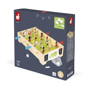 O brinquedo é composto por 4 fileiras de jogadores (total de 12 jogadores) e 3 bolinhas de madeira, promovendo partidas animadas entre dois participantes.