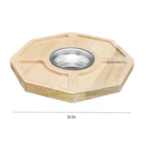 Mini petisqueira em madeira com molheira em inox 24x2 cm