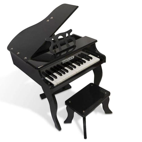 Mini Piano De Cauda Infantil TurbinhoPiano de cauda acústico infantil com 30 teclas turbinhoO mini piano de cauda turbinho, foi desenvolvido para despertar os dons naturais do "pequeno" músico. Extremamente resistente ele é todo construído em madeira, com uma acabamento impecável, laqueado em alto brilho, finaliza a montagem todas as travas, buchas e parafusos em aço garantem a robustez desse piano.Sentado na banqueta, cada som emitido será uma grande alegria e com entusiasmo a criança se envolve e penetra no fantástico mundo da música e poderá dar a primeira audição de muitas outras que poderão vir pela vida a fora. Mais que um brinquedo, um instrumento acústico.Turbinho nutre um ouvido musical e promove a coordenação motora.Especificações30 teclas = 2 oitavas e meia indicado para crianças de 3 a 5 anos Medidas do piano montado: 49,3 cm de altura 47,5 cm de largura 48,5 cm de comprimento Peso do produto:10,50 kg Banquinho: 28 largura x 20 altura x 18 comprimento Montagem fácil e rápida.