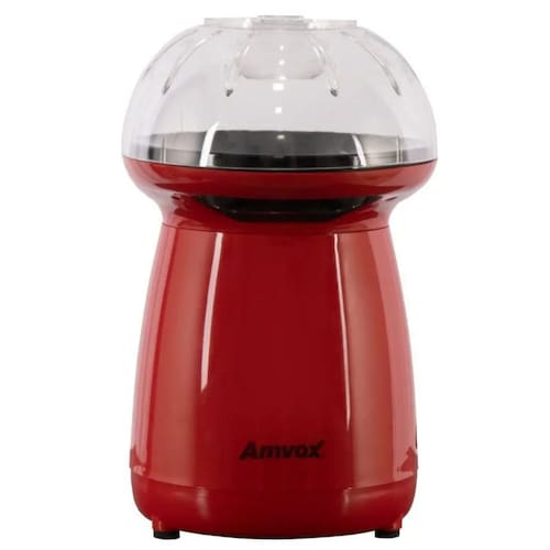 Mini pipoqueira elétrica Amvox, 1200W, prepara 100g de pipoca em 3,5 minutos, sistema de ar quente, não necessita óleo, inclui colher dosadora e bico direcionador.Preparação
