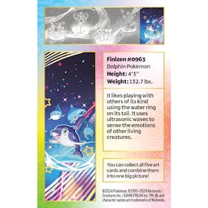 Pokémon TCG: Escarlate e Violeta — Mini Lata Paldean Fates – Finizen (2 Pacotes Booster, 1 Adesivo e 1 Cartão de Arte) - Os holofotes brilham em Pokémon Brilhantes fazendo seu retorno ao Pokémon TCG! - Expanda sua coleção com esta mini lata Scarlet & Violet—Paldean Fates, com Finizen. - Nesta mini lata, você encontrará 2 Pokémon TCG: Scarlet & Violet — booster packs Paldean Fates, 1 adesivo e 1 carta de arte Pokémon — você pode colecionar e combinar todos os 5! - Esta fantástica lata é fácil de abrir e tem o tamanho perfeito para levar seus cartões favoritos em qualquer lugar! - Brilhe com Pokémon da Paldea!