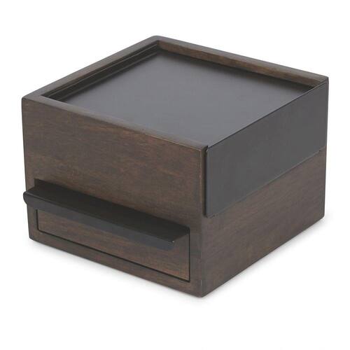 Mini Porta Joias Caixa Organizadora Stowit Nogueira Umbra Dimensões: 16,7 x 15,2 x 10,9 cm Material: Madeira de Nogueira/Metal
