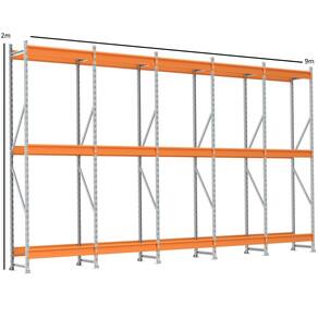 KIT MINI PORTA PALLET AMAPÁ 250KG 3 NÍVEL (COM 15 LONGARINAS) 9,00 X 2,00 X 0,60 METROS SEM BANDEJA - MULTIUSO