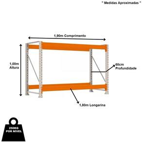 Bancada Mini Porta Pallet 250Kg INICIAL 1,00m x 1,80m x 60cm Amapá 2 NÍVEIS A Bancada de Mini Porta Pallet é produzido em aço resistente, com capacidade de 250kg por Nível e reforço nas laterais é indicado para depósitos, estoques e exposição, como: pet shops, oficinas, lojas de materiais de construção e mini atacarejos, processos produtivos com a mais alta tecnologia do mercado e um cuidado especial em cada etapa de produção Prático e versátil dispensa o uso de empilhadeiras, onde as mercadorias são depositadas e retiradas manualmente. Além disso, é de fácil montagem, com a simples colocação de porcas e parafusos, unindo as longarinas às colunas. A pintura dos produtos é feita por meio da técnica eletrostática, com tratamento anticorrosão uniforme e resistente. A Fileira de Mini Porta Pallets deve ser iniciada com o Mini Porta Pallet INICIAL que possui 2 colunas. O Mini Porta Pallet CONTINUAÇÃO possui 1 coluna, utilizada para dar continuidade à fileira e não pode ser montada individualmente. Dimensões Aproximadas Altura: 1,00mProfundidade: 60cmComprimento Longarina: 1,80m Comprimento Total Montada: 1,90m " Medida Aproximada " Características Material: AçoMarca: AmapáCor: Cinza/LaranjaCapacidade Por Nível: 250kgCapacidade Peso Total: 500kgFornecedor: Mixmob Instalações Comerciais Mini Porta Pallet INICIAL possui 02 Laterais, Indispensável para Iniciar uma Fileira. Contém 02 Laterais 1,00m x 0,60m - Amapá02 Pares Longarinas 1,80m x 0,60m - AmapáEntrega Via: TransportadoraPrazo: Consulte pelo CEP com nossos vendedores Garantia Contra Defeitos de Fabricação: 12 mesesDevoluçãoEm até 7 dias após a chegada do produto, você tem o direito de realizar a devolução. Mas para isso, a mercadoria não deve ter sido montada, utilizada e danificada.Horário de AtendimentoSegunda a Sexta-feira, das 13:00h às 17:00h.Dúvidas, Informações, Consulte Nossos Vendedores Via WhatsApp.\nFicha Técnica\nCódigo 1671\nModelo Linha Mini Porta Pallet 250kg\nCategoria Mini Porta Pallet Amapá\nMarca Amapá Metalúrgica\nItens Inclusos 02 Laterais 1,00m x 0,60m - Amapá02 Pares Longarinas 1,80m x 0,60m - Amapá\nGarantia 1 ano após o recebimento do produto\nDisponibilidade Disponível em 2 dias úteis\nInformação adicional Dúvidas, Consulte Nossos Vendedores Via WhatsApp.