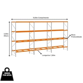 Material: AçoCor: Cinza/LaranjaCapacidade por Nível: 500kgCapacidade Peso Total: 6000kg