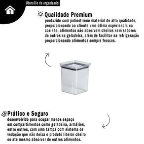 Mini Pote Hermético Lumini Quadrado Multiuso Com Sistema De Vedação Empilhável Transparente Livre de BPA 180ML A Meu Canto Shop traz o que tem de melhor, mais moderno e bonito no mercado de casa, cozinha e decor Priorizando sempre a qualidade dos produtos para satisfazer você CARACTERÍSTICAS Material Poliestireno Medidas 14,5 cm x 6,5 cm Peso aprox.100g cada Capacidade 180ml