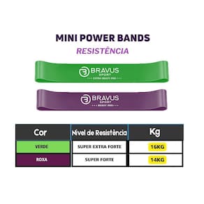 Os exercícios com as mini bands Bravus tonificam os músculos, defininem pernas, glúteos, braços e costas e você pode usar as mini bands individuamente ou em conjunto. Com o novo kit de Mini Power Bands Bravus, agora você passa a ter super cargas de 14kg no modelo Super Extra Forte e 16kg no Extreme, garantindo muito mais intensidade no seu treino