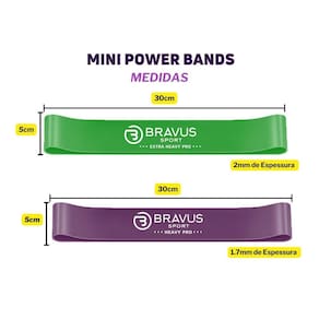 não importa se você está treinando em casa, no parque ou na academia, o Kit Mini Power Bands Bravus garante carga extrema para seu treino Seu Kit Power foi feito para um treino verdadeiramente Brabo Muito mais carga, muito mais resultado com as bands nas tensões Heavy Pro e Extra Heavy Pro