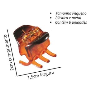 Prendedor de cabelo também conhecido como piranha, é um objeto para prender os cabelos ou usar como adorno conforme gosto pessoal.O prendedor da linha daily possui dentes que se encaixam perfeitamente, fazendo assim, que os cabelos fiquem mais presos.Com boa abertura, para pegar mechas de cabelos mais grossas.Tamanho pequeno, por isso seu uso ideal seria em cabelos de crianças, ou franjas e cabelos mais finos.