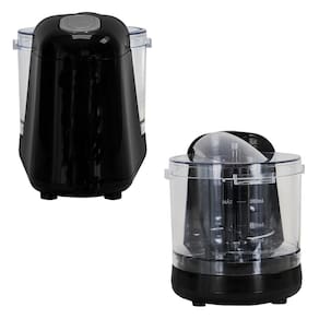 Mini processador de alimentos 5 em 1 Agratto, ideal para picar, moer, triturar, fatiar e ralar alimentos. Compacto, desmontável e com trava de segurança.Acessórios