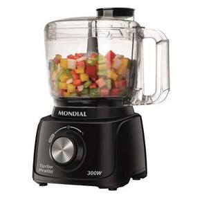 Mini Processador Mondial Turbo Pratic 300W com 1 velocidade + função pulsar, copo de 500ml e lâmina em aço inox.Acessórios