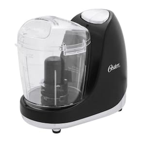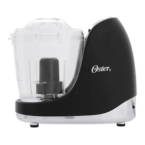 Mini processador de alimentos clássico Oster, 125W, com 2 velocidades e função pulsar. Possui jarraAcessórios