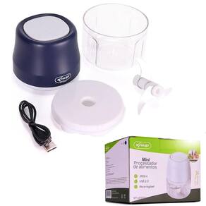 - Triturador de alimentos portátil - Tritura alho, cebolas, vegetais, amendoim, nozes - 3 Lâminas em aço inoxidável - Bateria interna com excelente autonomia - Não requer cabos durante a utilização